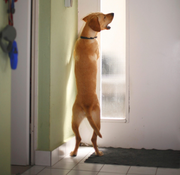 One afternoon, the doorbell rang. Max shot off like a rocket.