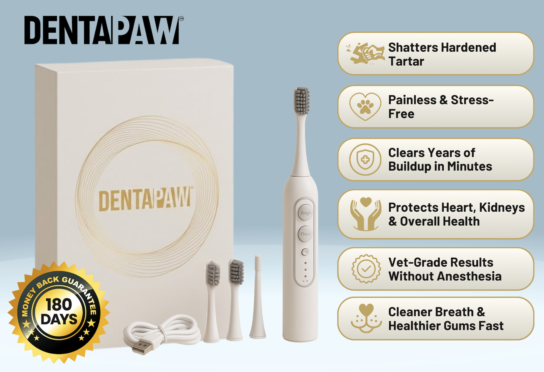 ✅ Get Dentapaw — Shatter the cement at home. Eliminate the bacterial fortress. Protect their heart, kidneys, and liver. Never play Anesthesia Roulette.